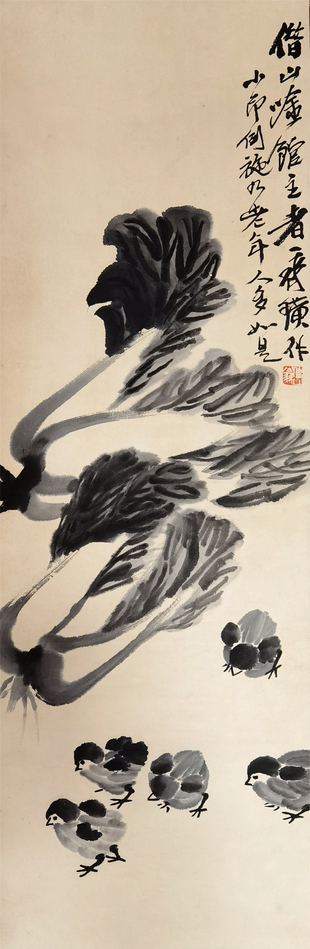 齐白石 青菜小鸡