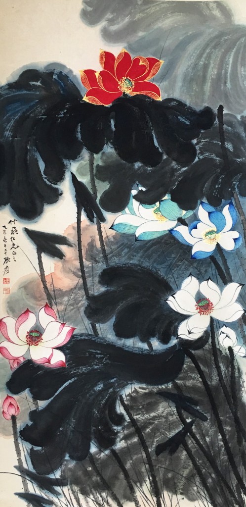张大千 金壁荷花