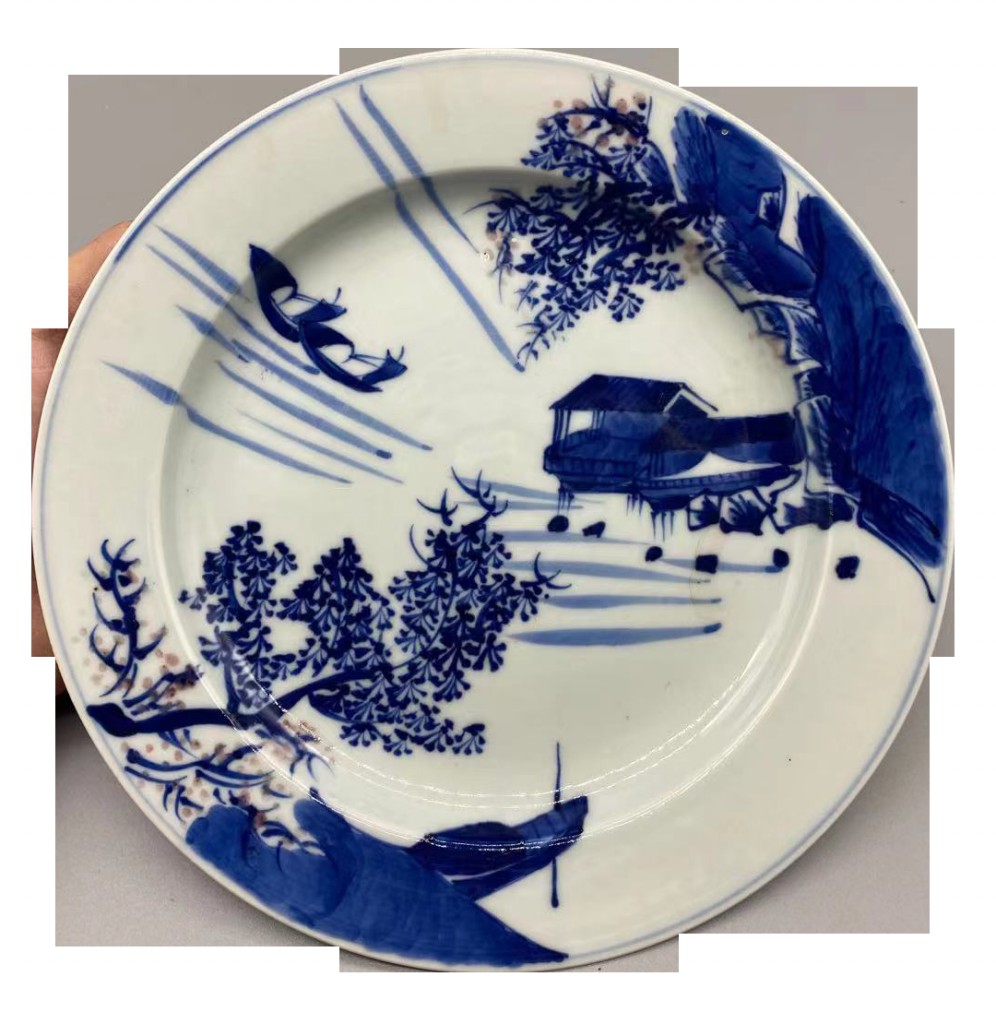 青花山水纹盘