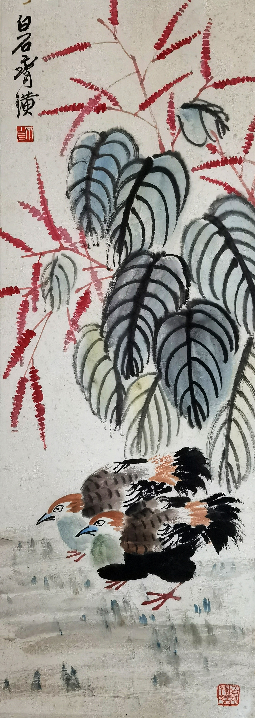 齐白石 花卉双禽